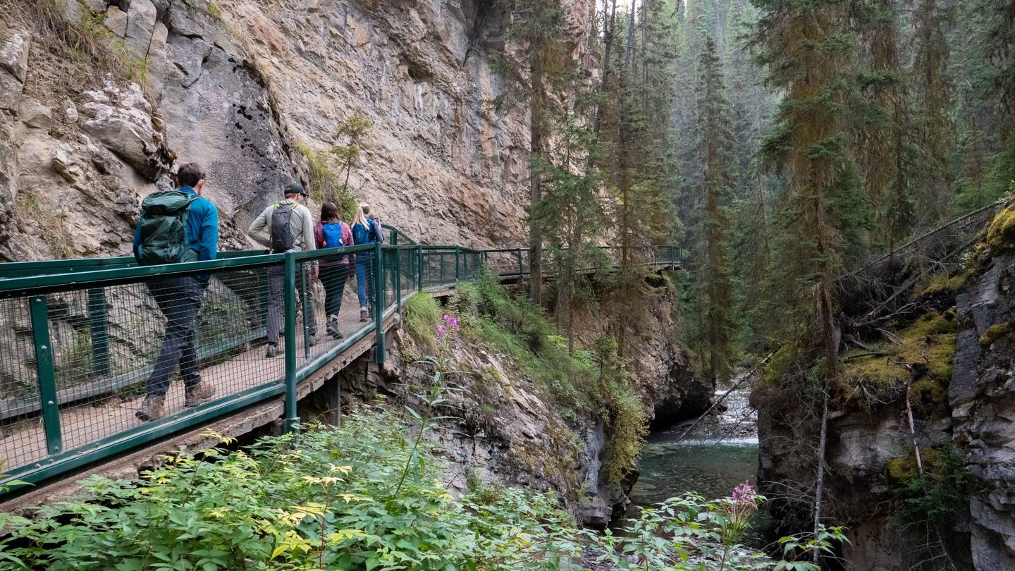 The hike includes stops at Mirror Lake for a snack and the Lake Agnes Tea House for tea and stunning views.
